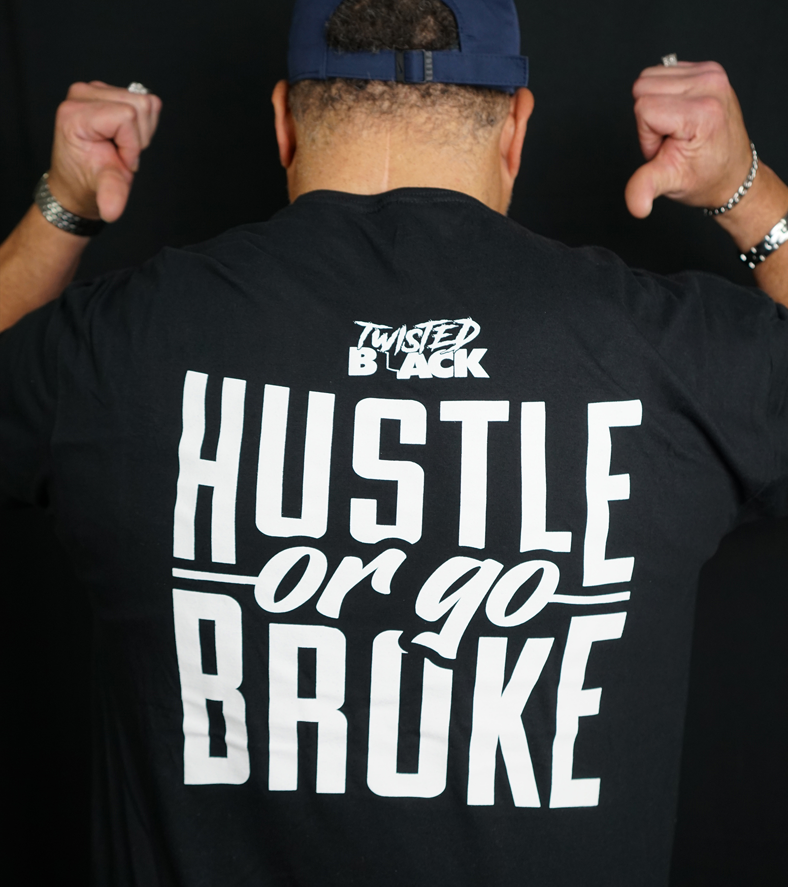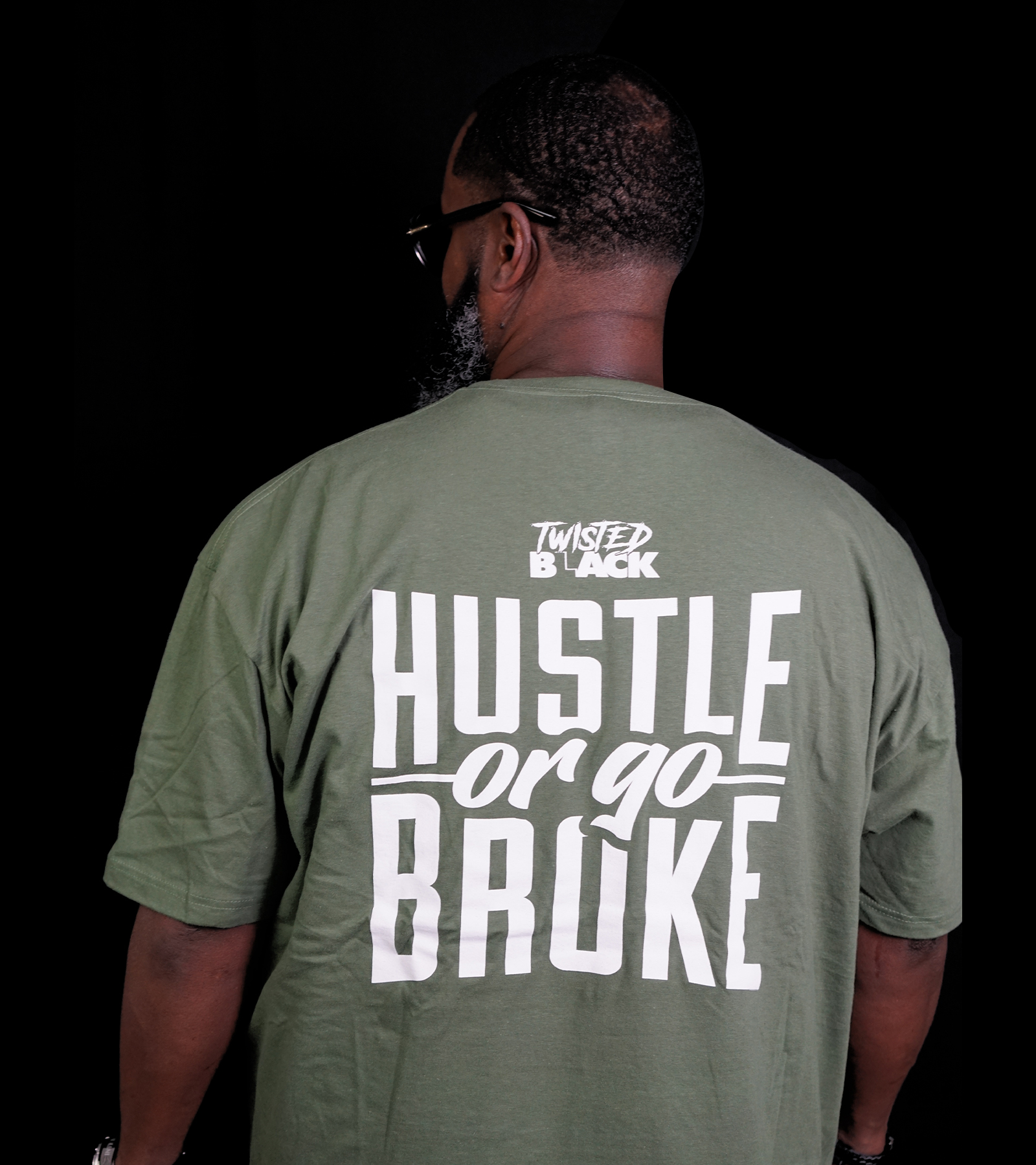 Official Hustle or Go Broke Tee Shirt. Available in Olive, Blue, Black, and Tan.